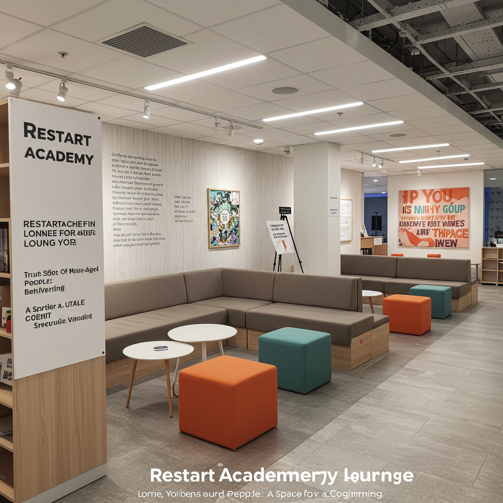 "신중년 전용 리스타트 아카데미 라운지는 인생의 두 번째 도약을 위한 전문 교육과 커뮤니티 공간으로, 신중년들이 새로운 기술을 배우고 사회적 네트워크를 확장할 수 있는 기회를 제공합니다."
