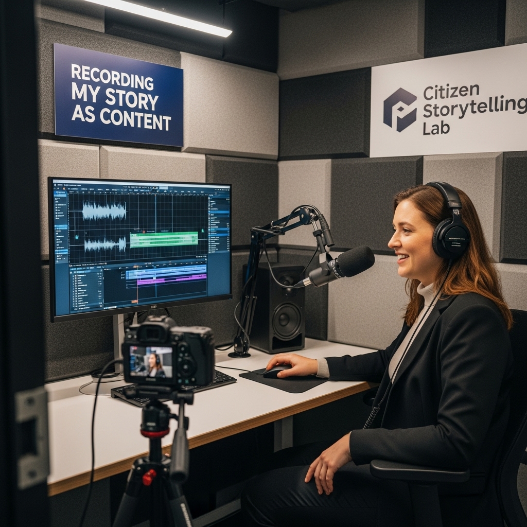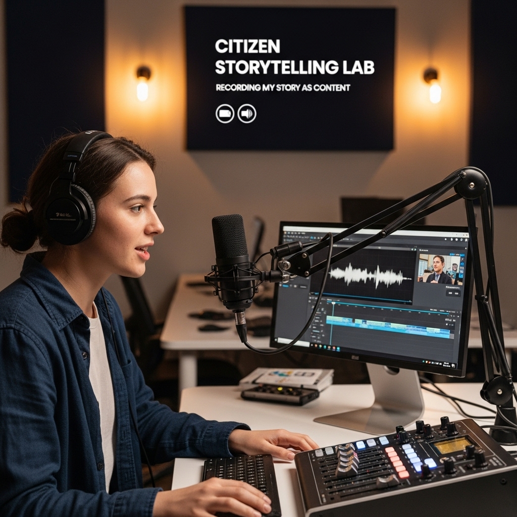 "시민 스토리텔링 실험실은 누구나 자신의 이야기를 영상이나 라디오 형태로 제작하며, 1인 미디어의 창작 과정을 직접 체험할 수 있는 공간입니다."