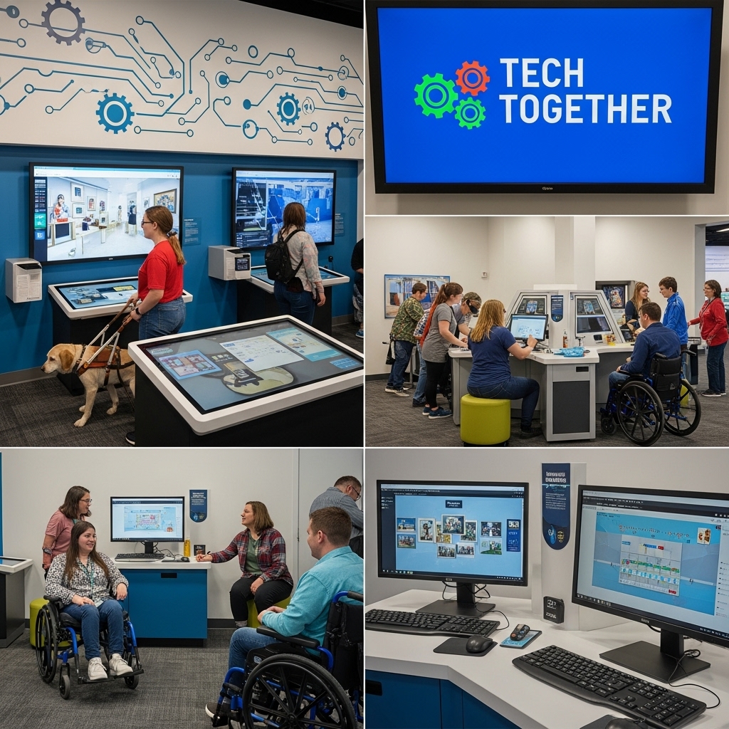 ‘함께하는 테크’는 장애인과 비장애인이 함께 디지털 기술을 체험하고, 상호 이해와 협력을 촉진하는 디지털 포용 공간입니다.